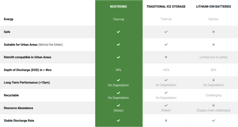 Nostromo Energy’s IceBrick is a behind-the-meter energy storage solution that harnesses water’s extraordinary ability to store energy when changing phase to ice. It creates ice during off-peak hours and uses these capsules to cool the building’s circulated water at peak hours. This dramatically lowers energy consumption from HVAC usage, which accounts for 40% of peak electricity demand.