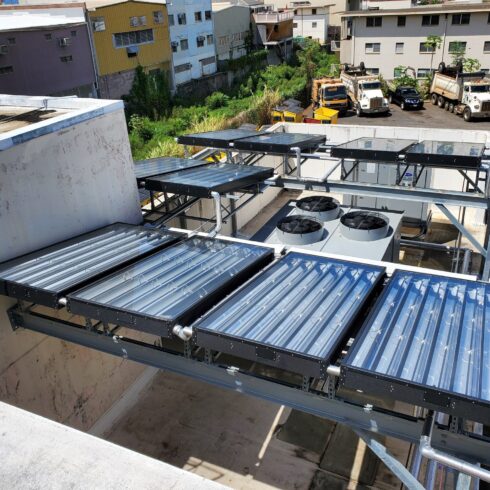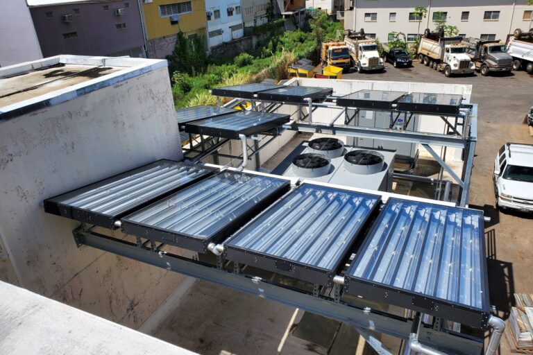 → Four 8-foot SunTrac panels on a 30-Ton Carrier chiller at the Honolulu Harbour, Hawaii, USA