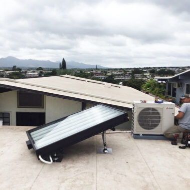 A residential installation of an 8-foot SunTrac solar panel in Honolulu, Hawaii, USA
